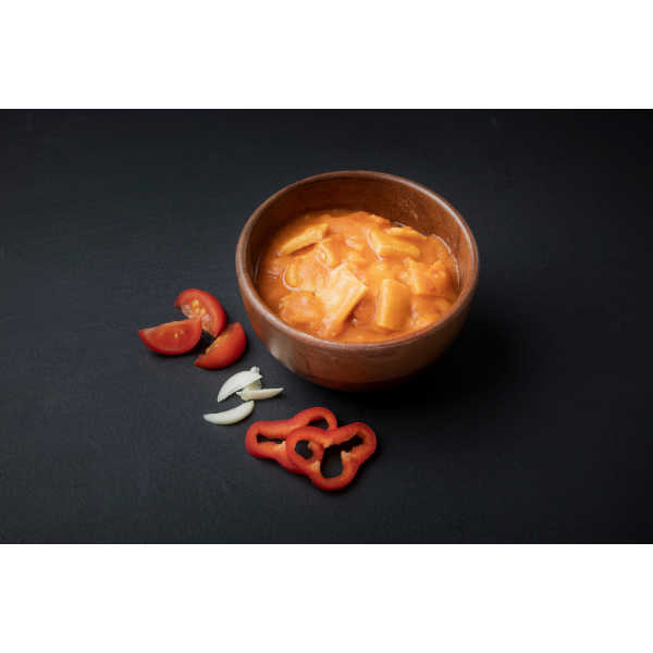 Real Turmat Bacalao ist eine ausgewogene Mischung hochwertiger Zutaten. Die Kartoffel, ein nährstoffreiches Lebensmittel, bildet die Grundlage dieser Mahlzeit. Zusammen mit Kabeljau, bekannt für seinen delikaten Geschmack und hohen Proteingehalt, entsteht eine schmackhafte und nahrhafte Kombination. Die Zugabe von Zwiebeln, Tomaten, Paprika und Knoblauch sorgt für einen reichen und komplexen Geschmack, während Olivenöl und Tomatenmark das Gericht mit ihren charakteristischen Aromen abrunden.