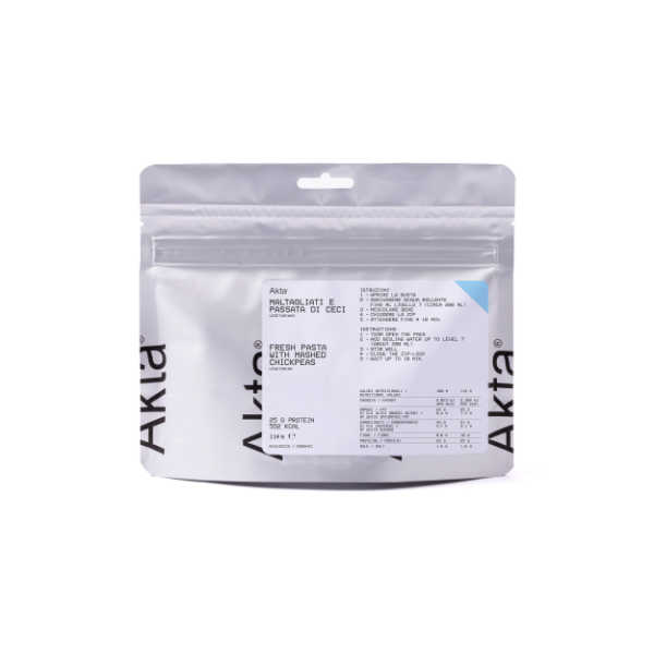 Die Biologische Pasta mit Pürierten Kichererbsen von Akta ist eine nahrhafte italienische Hauptmahlzeit, die Kraft, Komfort und kulinarische Raffinesse in einer kompakten Verpackung vereint. Mit 552 kcal pro Portion bietet dieses Gericht eine ideale Balance zwischen langanhaltender Energie, Eiweiß und gesunden Fetten – perfekt für alle, die aktiv in der Natur sind oder sich auf Krisensituationen vorbereiten. Akta bringt mit dieser Mahlzeit ein Stück authentische italienische Gastronomie in die Outdoor-Welt: eine seidige Kichererbsencreme, kombiniert mit handwerklicher Eierpasta mit Kurkuma und einem Hauch von Parmigiano Reggiano. Dank modernster Gefriertrocknung bleiben Geschmack und Nährwert optimal erhalten, sodass du auch fernab der Zivilisation gesunde, echte Nahrung genießen kannst.