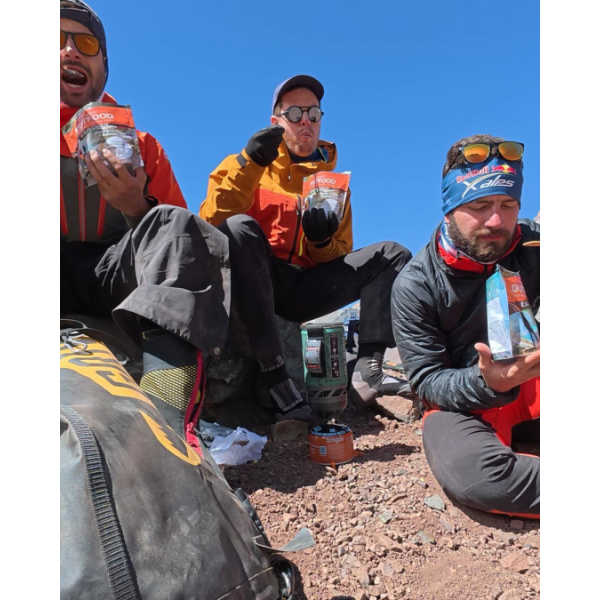 - Schneide den Beutel unterhalb des Zip-Verschlusses auf, rühre noch einmal kurz um und genieße deine köstliche, warme Mahlzeit! Kein Abwasch, kein Aufwand – nur pure Zufriedenheit und ein Moment kulinarischen Genusses in der Natur. Die zusammenfaltbare Verpackung macht die Entsorgung zum Kinderspiel.