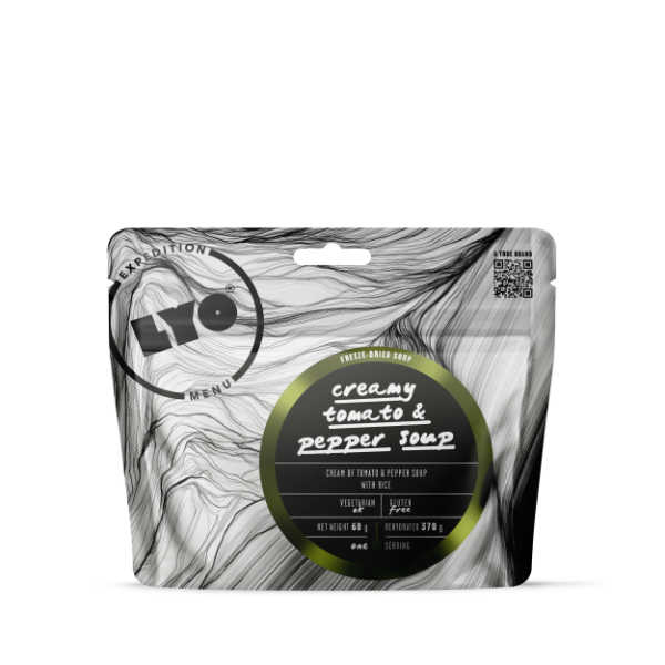 Die Qualität der Zutaten ist das Fundament der LYOFOOD-Philosophie. Diese Suppe basiert auf 30 % hochwertigem Tomatenpüree und 8 % konzentriertem Tomatenmark, die reich an Antioxidantien wie Lycopin sind. Ein technisches Highlight der Rezeptur ist der Anteil von 15 % roter Paprika, die zusammen mit den Tomaten geröstet wird, um eine tiefe, rauchige Süße zu erzeugen. Für die notwendige Sättigung sorgen 26 % weißer Reis, der als effiziente Kohlenhydratquelle dient und den Blutzuckerspiegel moderat stabilisiert. Frische Sahne verleiht der Suppe ihre luxuriöse, cremige Konsistenz und liefert wertvolle Fette, die für die Aufnahme fettlöslicher Vitamine im Outdoor-Alltag essenziell sind. Da LYOFOOD alle Gerichte vor der Gefriertrocknung frisch kocht, bleiben die Aromen von Zwiebeln und erlesenen Gewürzen perfekt konserviert. Es ist eine gesunde Mahlzeit, die vollständig ohne künstliche Konservierungsstoffe, Farbstoffe oder Geschmacksverstärker auskommt.