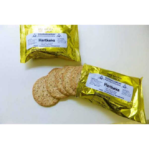 Die Welt um uns herum kann unvorhersehbar sein, aber Ihre Energieversorgung muss es nicht sein. Mit der Wahl der Hartkeks (rund) von Globetrotter entscheiden Sie sich für eine bewährte Methode der Energiezufuhr, die sich unter den schwersten militärischen und zivilen Bedingungen bewiesen hat. Er ist ein essenzieller Bestandteil jeder Vorbereitung. Fügen Sie sie noch heute Ihrer Ausrüstung hinzu und erleben Sie die Seelenruhe, die mit einer zuverlässigen, vegetarisch verantworteten und kalorienreichen Nahrungsquelle einhergeht. Vertrauen Sie auf den Hartkeks für Ihre nächste Outdoor-Expedition.