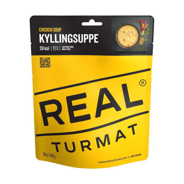 Real Turmat Hühnersuppe – Genussvolle Energie für Outdoor-Abenteurer. Leicht, nahrhaft und praktisch verpackt. Jetzt entdecken!