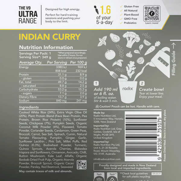 Zusammenfassend lässt sich sagen, dass das Indian Curry von Radix Nutrition die Messlatte für moderne Outdoor-Verpflegung neu definiert. Du investierst hier nicht in einfache Kalorien, sondern in eine technologische Lösung für Deine physische Belastbarkeit. Mit der Ultra Range erhältst Du eine Leichtgewicht-Nahrung, die unter strengsten Qualitätskriterien in Neuseeland gefertigt wird und Profis weltweit durch ihre extreme Nährstoffdichte überzeugt. Die lange Haltbarkeit und die kompromisslose Auswahl natürlicher Superfoods machen sie zur ersten Wahl für jeden, der seine Leistungsgrenzen verschieben will. Wer sagt, dass Expeditionsnahrung nur Mittel zum Zweck sein muss? Erlebe die Synergie aus hochwertigem Reis, Olivenöl und einem Vitaminkomplex, der Deinen Körper von innen heraus stärkt. Pack Dir das Indian Curry in Deinen Rucksack und spüre den Unterschied, wenn wissenschaftliche Präzision auf echten Geschmack trifft. Dein nächstes Abenteuer wartet – sei bereit dafür!