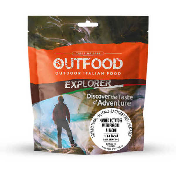Outfood by Tiberino steht für Qualität, Authentizität und Innovation im Bereich der Outdoor-Ernährung. Mit dem Kartoffelpüree mit Steinpilzen und Speck liefert das Unternehmen ein Produkt, das perfekt auf die Anforderungen moderner Abenteurer und die Bedürfnisse von Situationen abgestimmt ist, in denen Vorbereitung entscheidend ist. Eine nahrhafte, energiereiche und extrem praktische Mahlzeit, die dir hilft, unter allen Bedingungen dein Bestes zu geben. Ob du eine anspruchsvolle Trekkingtour planst, deinen Notvorrat ergänzt oder einfach eine schnelle, leckere Mahlzeit für unterwegs suchst – dieses Kartoffelpüree ist die ideale Wahl. Der Fokus auf 100% natürliche Zutaten und die authentischen italienischen Aromen machen es zu einer bewussten und verantwortungsvollen Entscheidung für alle, die Wert auf Qualität und Einfachheit legen. Erlebe selbst den Komfort und den authentischen Geschmack dieses köstlichen Kartoffelpürees – wo auch immer dich dein Abenteuer hinführt. Nimm dieses unverzichtbare Produkt mit und sei stets vorbereitet – auf alles, was kommt!