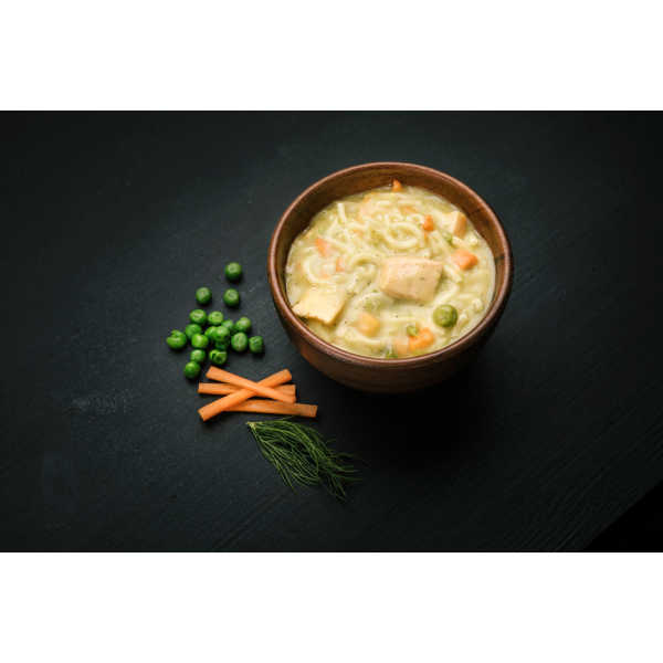 Jede Portion ist sorgfältig zusammengestellt, um höchste Qualität und Nährwert zu gewährleisten. Die Basis bildet Pasta aus Hartweizengrieß, kombiniert mit feinem norwegischem Lachs, Karotten, Erbsen und einer cremigen Sahnesauce mit einem Hauch von Dill. Diese Komposition sorgt für einen harmonischen, vollmundigen Geschmack – nahrhaft, sättigend und angenehm leicht.