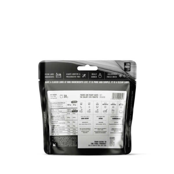 Die Liste der Inhaltsstoffe ist ein Musterbeispiel für absolute Reinheit: 100 % Sauerkirschscheiben. Bei LYOFOOD gibt es keine Kompromisse – kein zugesetzter Zucker, keine Schwefelung und keinerlei künstliche Konservierungsmittel. Die Qualität beginnt bei der Auswahl tiefroter, vollreifer Kirschen, die zum Zeitpunkt ihres höchsten Nährstoffgehalts geerntet werden. Durch den technischen Prozess der Gefriertrocknung wird der Kirsche unter Vakuum die Feuchtigkeit entzogen, ohne die empfindliche Zellstruktur oder die wertvollen Anthocyane (Farbstoffe mit antioxidativer Wirkung) zu zerstören. Das bedeutet für Sie: Der volle, intensive Geschmack und die wertvollen Inhaltsstoffe bleiben fast vollständig erhalten. Es ist eine gesunde Alternative zu künstlich gesüßten Riegeln, die den Körper im Outdoor-Einsatz mit echtem Nährwert versorgt. Die Kirschen sind von Natur aus vegan und vegetarisch, was sie zu einer universell verträglichen Komponente in Ihrer Vorbereitung macht. Technisch gesehen bietet das Produkt eine hohe Bioverfügbarkeit der Vitamine, was besonders in Stressmomenten wichtig ist.