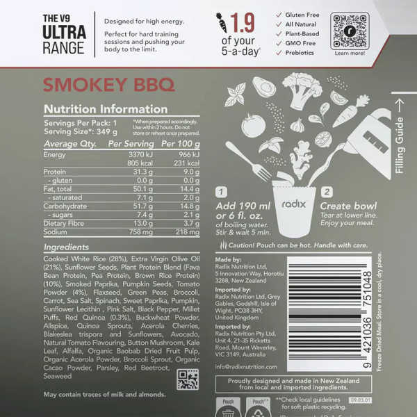Zusammenfassend lässt sich sagen, dass Smokey Barbecue von Radix Nutrition die Messlatte für moderne Outdoor-Verpflegung neu definiert. Du investierst hier nicht in einfache Kalorien, sondern in eine technologische Lösung für Deine physische Belastbarkeit. Mit der Ultra Range erhältst Du eine Leichtgewicht-Nahrung, die unter strengsten Qualitätskriterien in Neuseeland gefertigt wird und Profis weltweit durch ihre extreme Nährstoffdichte überzeugt. Die lange Haltbarkeit und die kompromisslose Auswahl natürlicher Superfoods machen sie zur ersten Wahl für jeden, der seine Leistungsgrenzen verschieben will. Wer sagt, dass Expeditionsnahrung nur Mittel zum Zweck sein muss? Erlebe die Synergie aus hochwertigem Reis, Olivenöl und einem Vitaminkomplex, der Deinen Körper von innen heraus stärkt. Pack Dir das Smokey Barbecue in Deinen Rucksack und spüre den Unterschied, wenn wissenschaftliche Präzision auf echten Geschmack trifft. Dein nächstes Abenteuer wartet – sei bereit dafür!